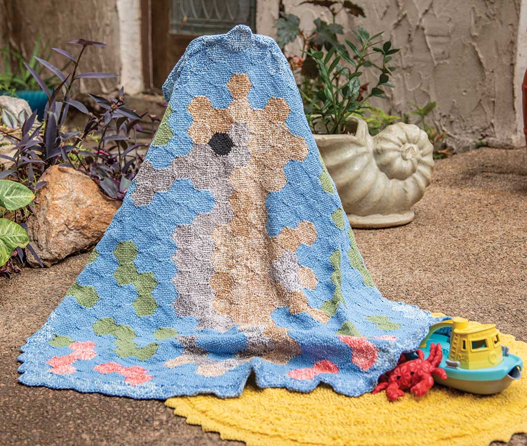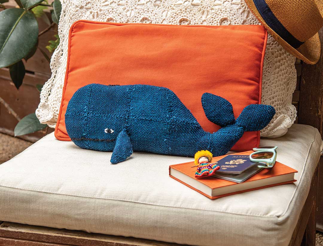 Travel the world without leaving your loom with the Summer 2022 issue of Easy Weaving with Little Looms. In this vacation-themed issue you’ll find 18 projects inspired by or designed for travel. Bring the beach home and into your wardrobe with colorful seaside-inspired runners and towels. Get the kiddos in on the fun with a playful seahorse hooded toddler towel and stuffed whale that doubles as a throw pillow. Travel anywhere in style with an inkle- or tablet-woven lanyard, a sweet embroidered travel pillow, a handwoven passport cover, and of course shawls and scarves galore.