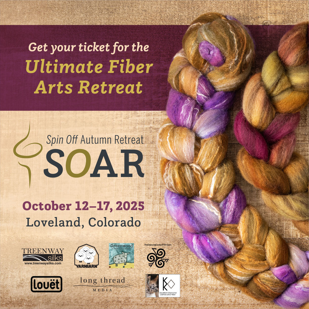 We like to think of the Spin Off Autumn Retreat (SOAR) as a spinner’s paradise. Imagine being in a room filled with people with the same interests while you learn from some of the top spinners and educators. You are all together for five glorious days in a beautiful location, making new memories, building skills, and, of course, spinning!