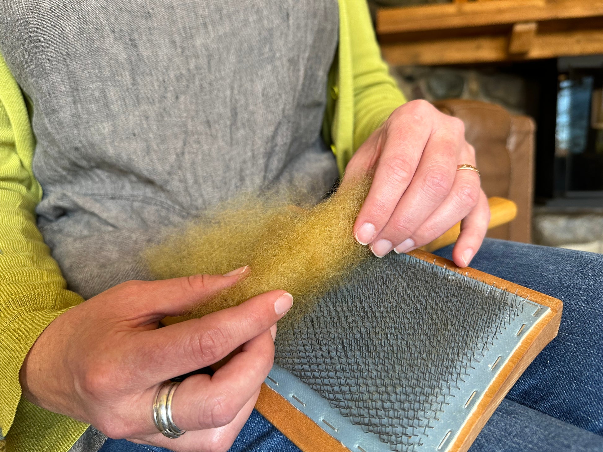 Heavenly Bresser, spinner, fiber artist, spinning wheel restorer, and instructor of the Spinning Fractal Yarnsvideo course