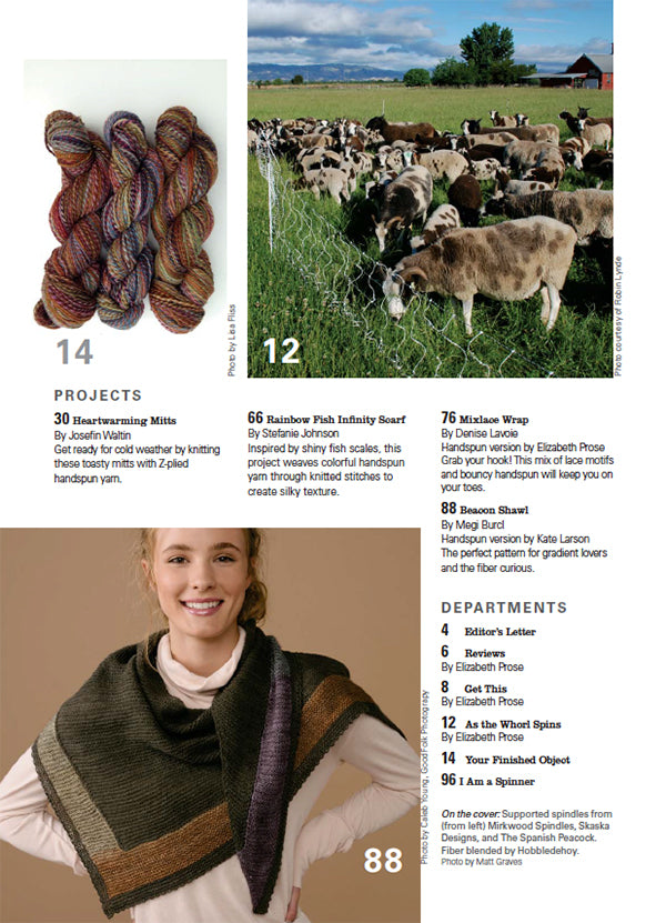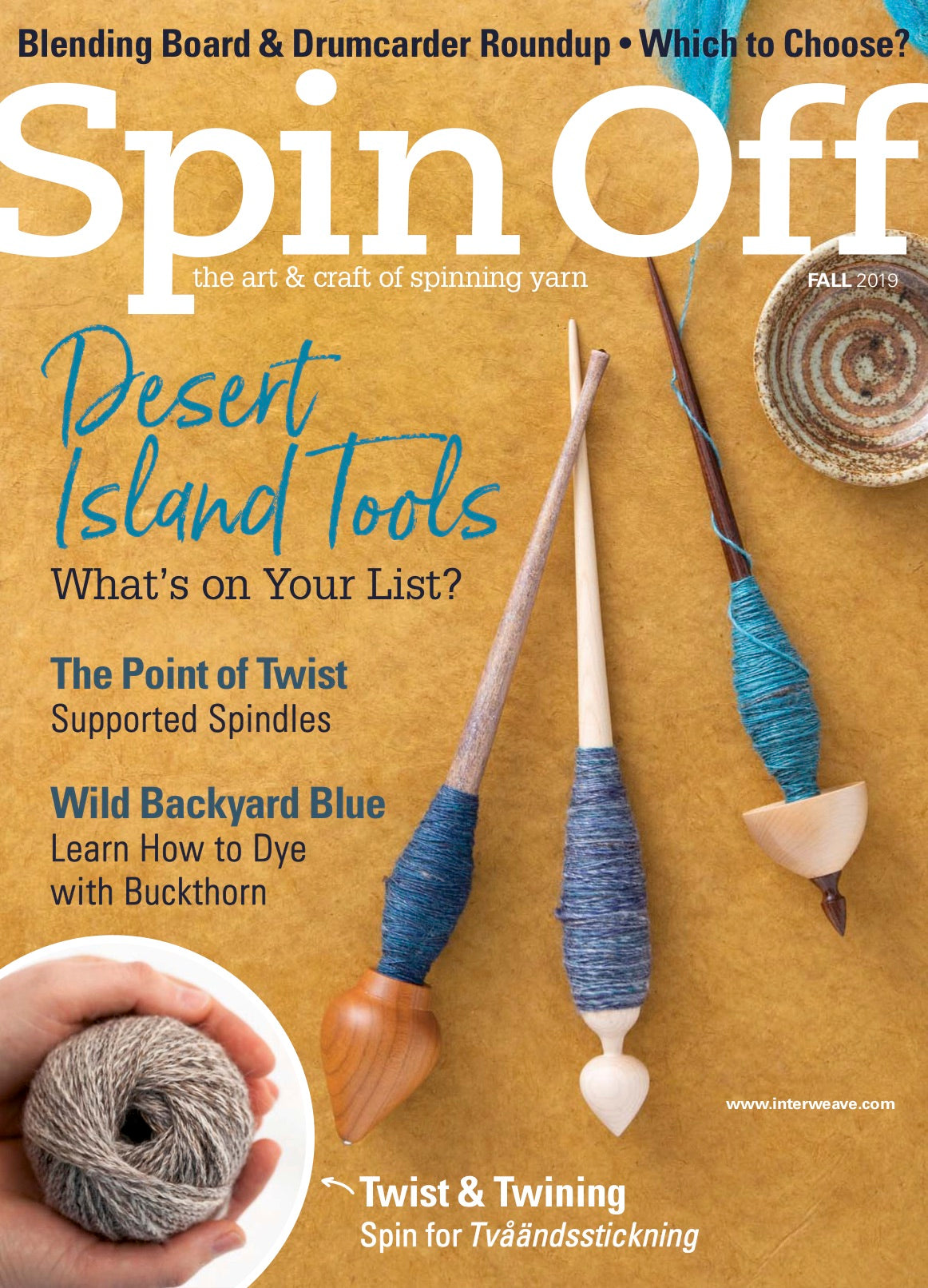 Explore the spinning tools our community cannot do without. From taking a whirl with a supported spindle to finding the blending board or drumcarder to suit your needs, we’ve got the scoop. Grab a seat and discover how sitting in the appropriately sized chair can make time at the wheel more comfortable. Build a spindle kate from a cardboard box. But there’s more to spinning than just tools—let’s not forget the yarn. Learn the S and Z of yarns spun for of twined knitting. Turn an invasive weed into a rainbow of color. Plus, get four patterns to knit and crochet using your handspun yarn. This issue features: