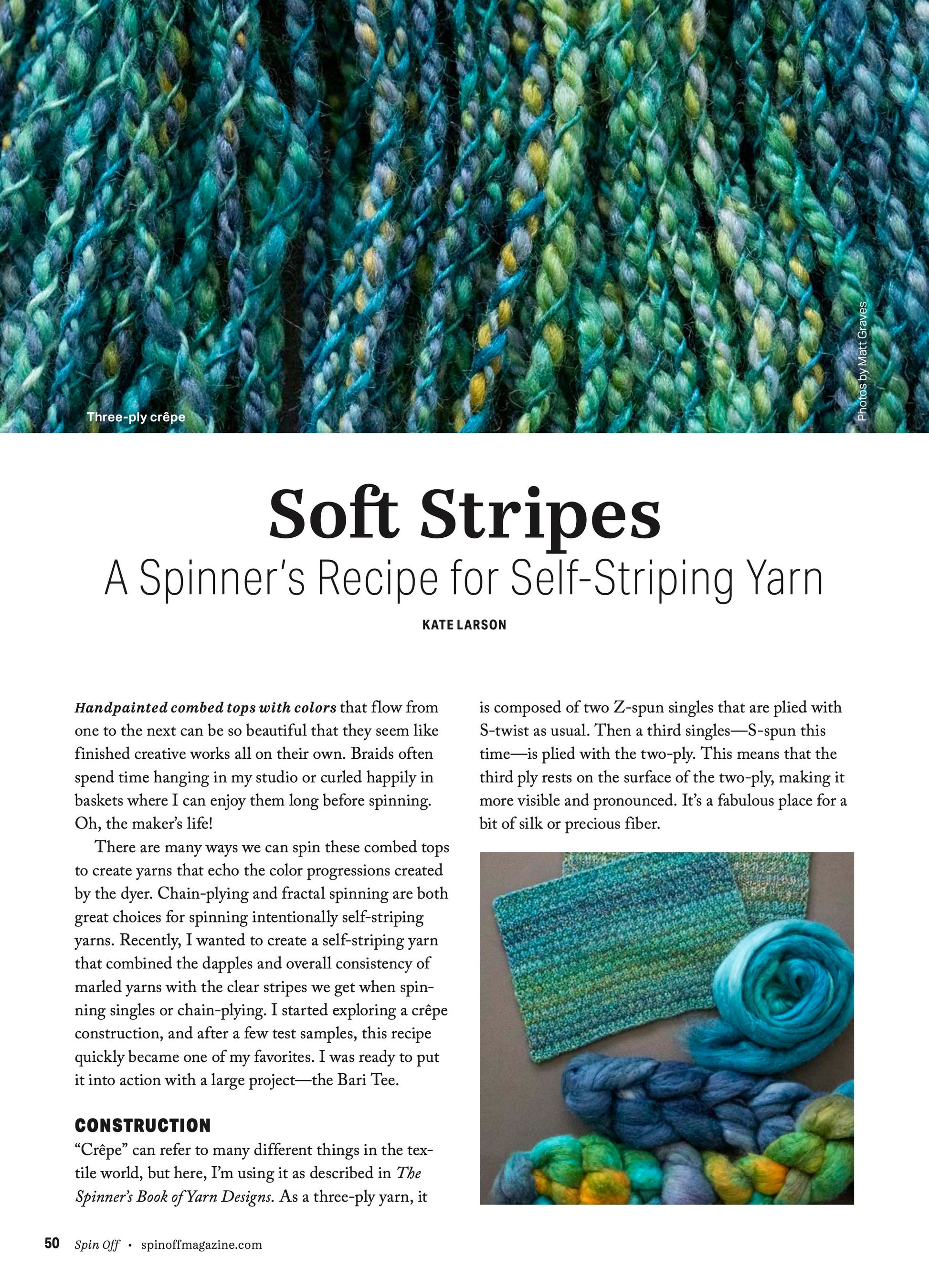 - Soft Stripes: A Spinner’s Recipe for Self-Striping Yarn by Kate Larson