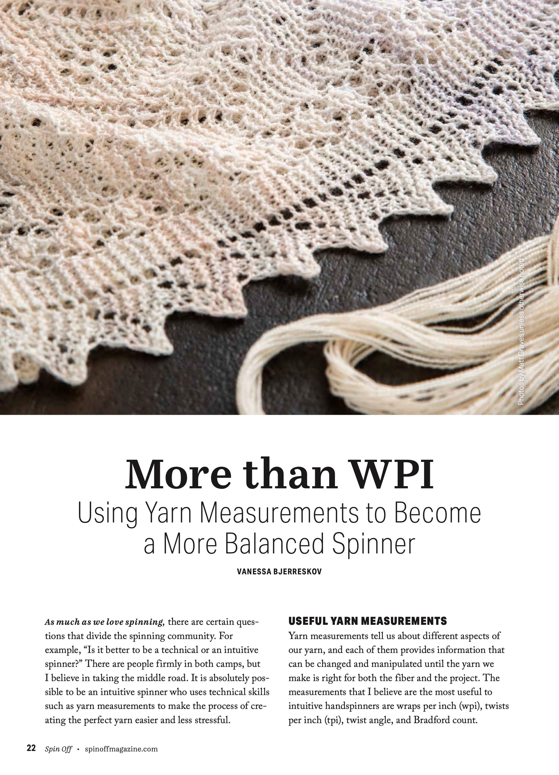 - More than WPI: Using Yarn Measurements to Become a More Balanced Spinner by Vanessa Bjerreskov