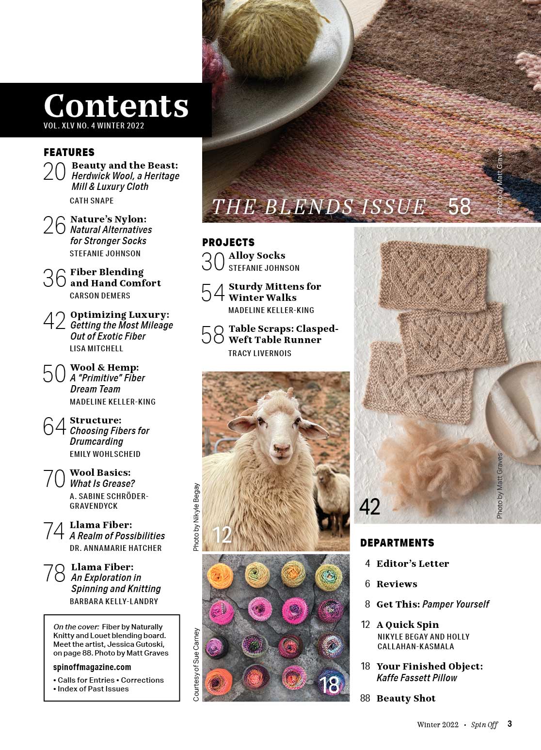 Discover fiber combinations that bring out the best in each other. See how just the right amount of luxury down paired with Merino can produce exquisite blends. Spin an Icelandic wool/hemp hybrid to use for knitting a sturdy pair of winter mittens. Learn how to card a rare-breed tweed from Hog Island sheep. And build a stronger sock yarn without the addition of nylon.