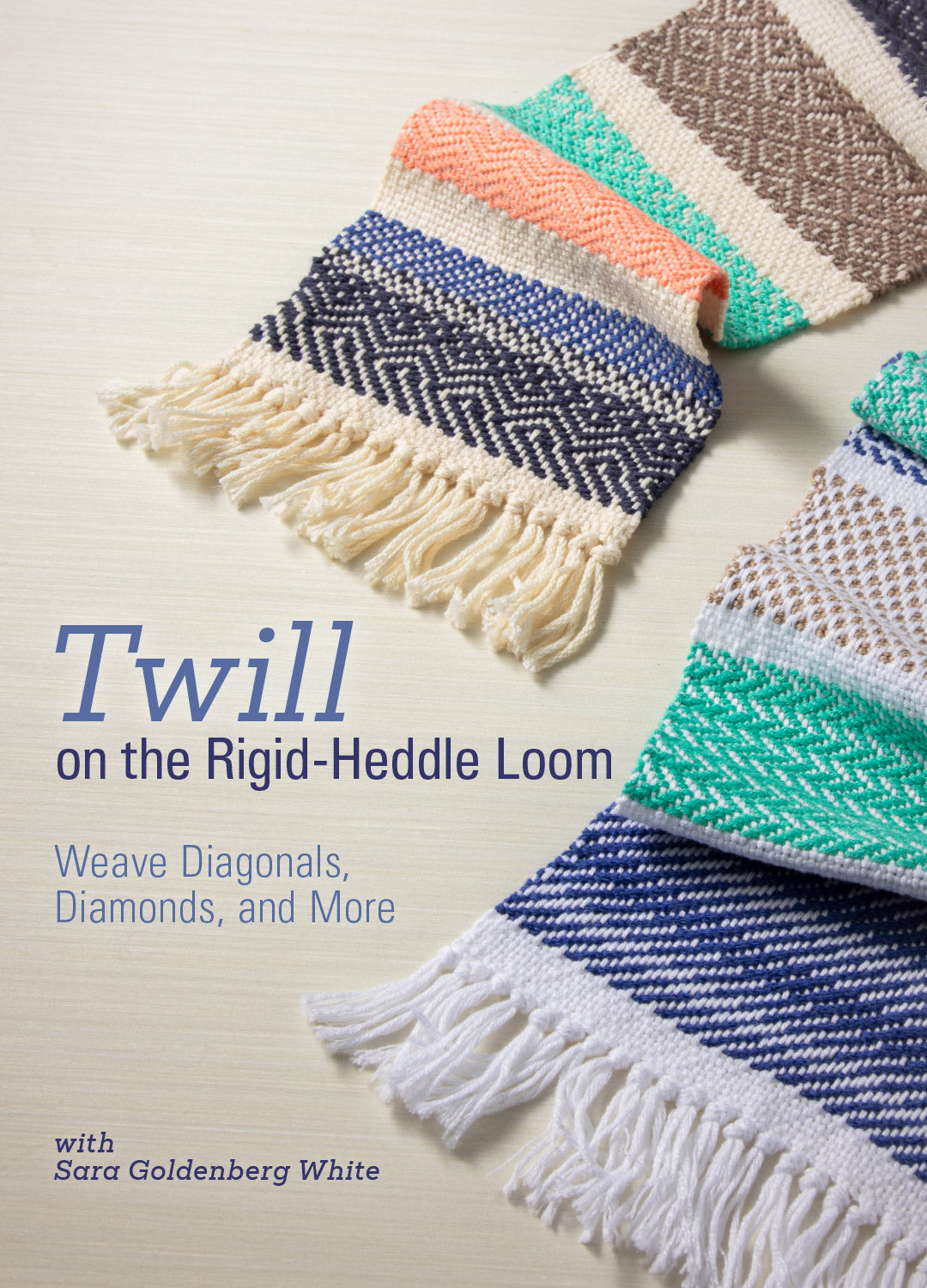 Sara has an easy-to-follow teaching style and provides many helpful tips and tricks throughout the 127-minute video to help you build your rigid-heddle weaving skills and confidence. She'll teach you how to unlock the potential of twill by converting your rigid-heddle loom into the equivalent of a 4-shaft loom using two heddles, a pick-up stick, and a heddle rod. After you know the basics, you'll be able to follow and weave the 11 twill drafts included in the workbook.